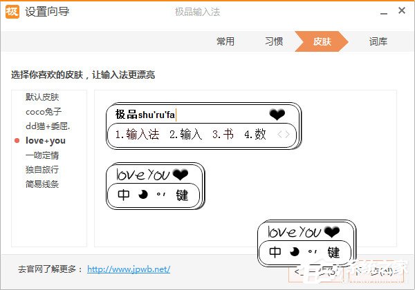 1、在极品五笔输入法的设置属性这里可以选择外观,上图有介绍。也可以在设置这里选择外观;