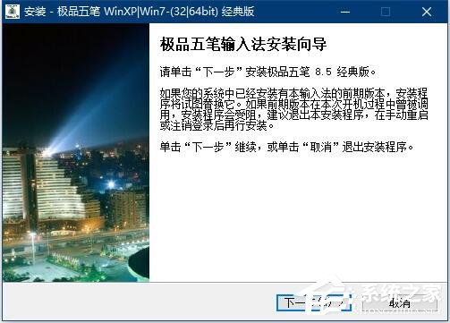1、首先在该页找到下载地址处选择任意地址将极品五笔输入法软件包下载至本地,并双击解压运行.exe格式程序。如下:我们直接单击【下一步】开始安装;