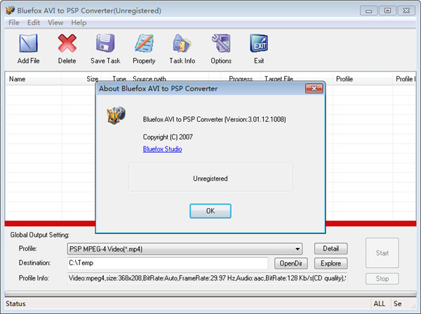 Bluefox AVI to PSP Converter(AVI到PSP转换器) V3.01 最新版