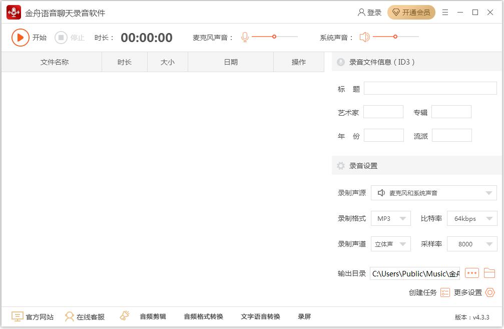 金舟语音聊天录音软件是一款实时音频录制软件,不压缩音频大小,还原无损音质;支持麦克风录音、电脑系统录音、音乐平台录制、有声读物录制、电台录制、视频会议录音、语音聊天录音等,同时还实现了定时录音功能,设置开始录制时间、结束录制时间,无人值守,轻松完成录音!