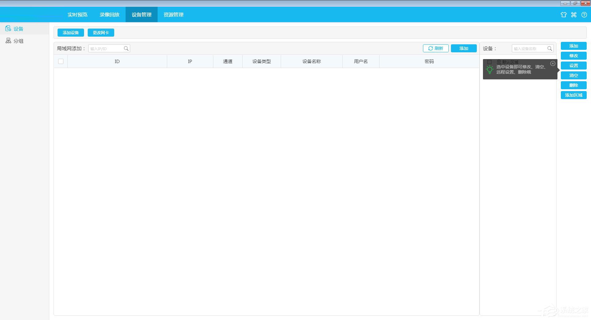 对不同区域的设备,可选择性添加分配至同一组。实现同时预览不同设备、不同区域监控视频画面的功能。