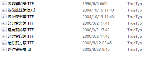 压缩包里共汉仪娃娃篆简、汉仪篆书繁、汉鼎繁印篆、经典繁印篆、经典繁方篆、经典繁角篆、迷你繁方篆、迷你繁篆书8种。