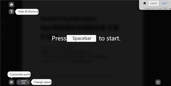 开始阅读前,会出现教程提示:按下空格键开始阅读、左下角设置速度等等。