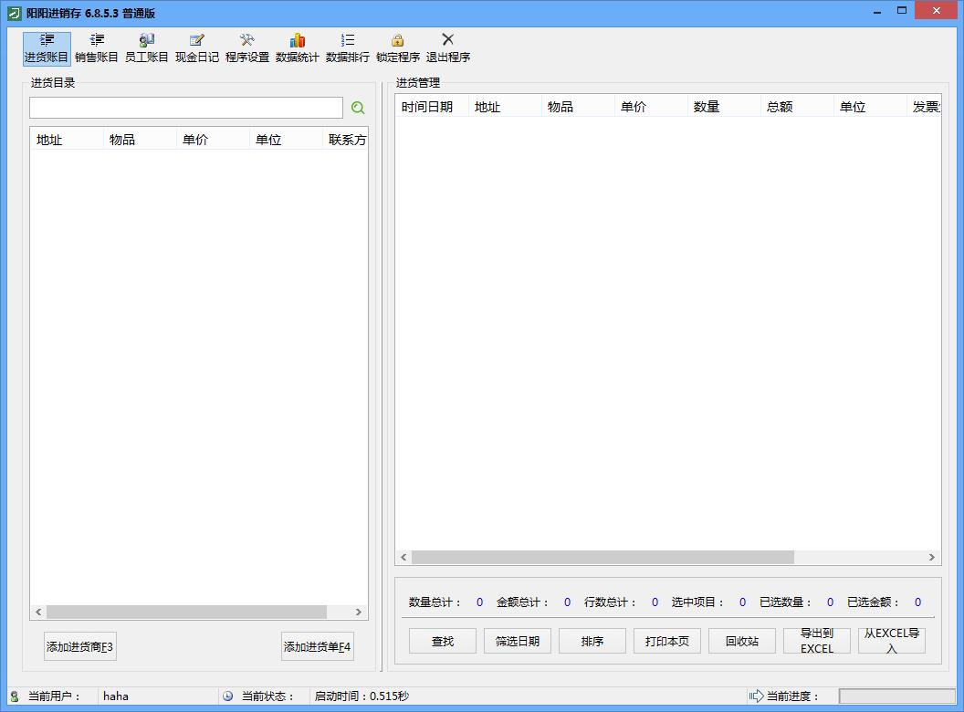阳阳进销存能够快速记录 进货账目、销售账目、员工账目 和 现金日记。