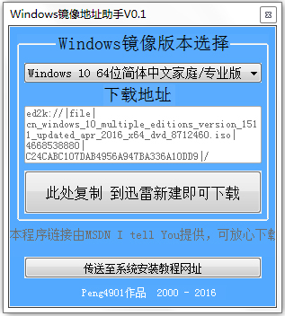 Windows镜像地址助手是专为Windows系统制作的一款镜像文件下载工具。通过该软件,可以快速获取指定版本的Windows原版系统镜像文件的官方下载地址,包括Win7、Win8.1、Win10的32位和64位家庭版、旗舰版以及专业版。有了这款软件,让您无需去微软官方寻找需要的Windows系统镜像的下载地址。本站提供Windows镜像地址助手免费下载。