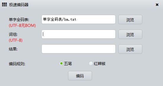 极速编码器是一款五笔输入法适用的编码软件,通过单字全码表,词组,结果进行编码,其中包含cnbook,正则处理词库十分方便!