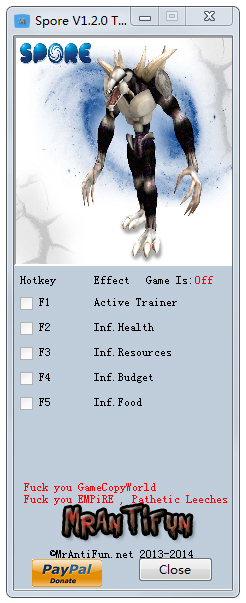 孢子四项修改器是该款同名经典PC上帝模拟类游戏——《孢子(Spore)》的作弊工具。该款孢子修改器可进行无限生命、无限资源、无限金钱等4项操作设置修改,帮助玩家更轻松的进行游戏体验。
