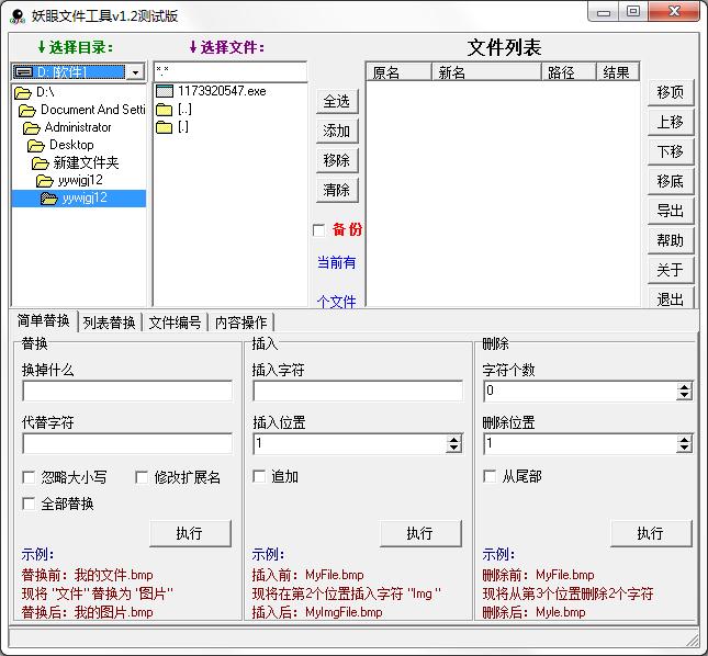 2、简单改名:批量插入、替换、删除文件名、扩展名修改。