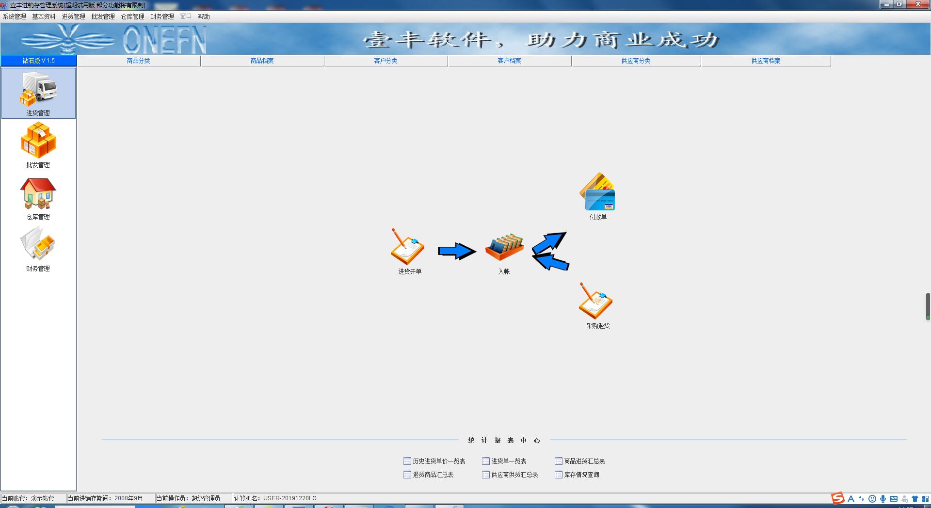 壹丰进销存管理软件是款基于商业行设计打造的进销存管理软件,它可以设置员工的操作权限,并且可以通过软件记录员工的绩效,它包含了商品信息管理、供应商信息管理、客户信息管理、员工信息管理、采购订单管理、销售订单管理、应收应付款管理、库存管理、库存明细查询、库存预警、数据报表以及数据备份等主要功能。