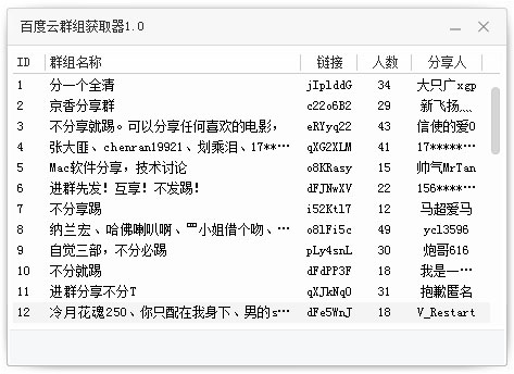 百度云群组拥有很多非常好用的资源,但是没人邀请你你就不能进入群组,那么这个百度云群组获取器就能快速获取云群组并一键加群,让你轻松的获取里面的资源。