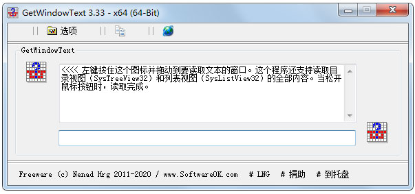 GetWindowText是一个非常小的窗口标题获取器,使用它可以读取窗口文本,它可以读取几乎所有的文本,例如:从编辑,静态,分组框中 - 控制等,该方案还支持目录树(SysTreeView32)和列表视图(SysListView32)阅读全部内容,当你释放鼠标按钮,将完成阅读。