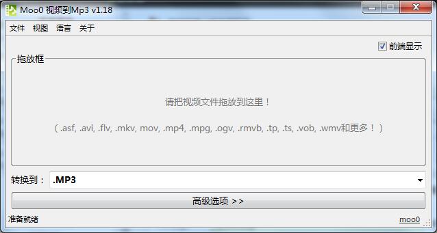 Moo0视频到Mp3是一款功能非常不错的视频转音频格式软件,有了这款软件,我们就可以将视频中的一段音频进行提取,并将其转换为mp3、wmv、OGG等音频格式。