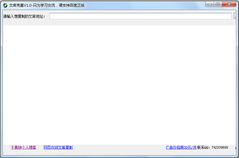 文库克星是一款可以复制百度文库、和豆丁文库资料的工具,文库不能无偿使用中,需要积分、帐号,不过使用文库克星它可以帮助你解决不必要的烦恼。文库克星可以全面复制文库资料,让你没有积分也一样下载和复制文库中的任何资料。本站提供文库克星绿色版免费下载。