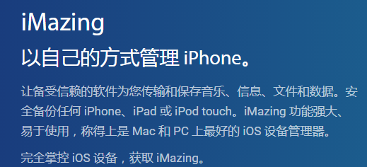 Imazing(苹果管理软件)是一款专门为苹果设备打造的软件,可以帮助iPhone手机用户管理自己的手机的软件,和iTunes相比,各项性能远超iTunes。只需要与自己的iPhone手机连接后即可轻松地算数文件,管理手机。