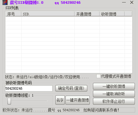 晨兮SID刷微博是一款采用提取sid的方式刷微博听众的辅助工具,安全、快捷、绿色、无毒,欢迎下载体验。