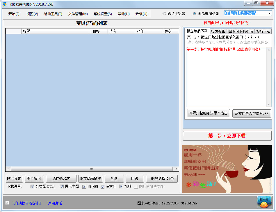 图老弟淘图是一款简单易用的电商宝贝图片下载工具,这款图片下载工具能够自动判断是否具备下载条件,支持批量下载,省事实力,支持淘宝,天猫,京东,聚划算等几十家购物平台的宝贝图片下载。