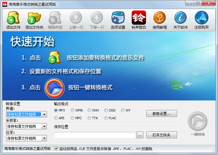 7、支持自动按同名 .CUE 文件抓取并转换 .APE、.FLAC、.WV 的音轨。