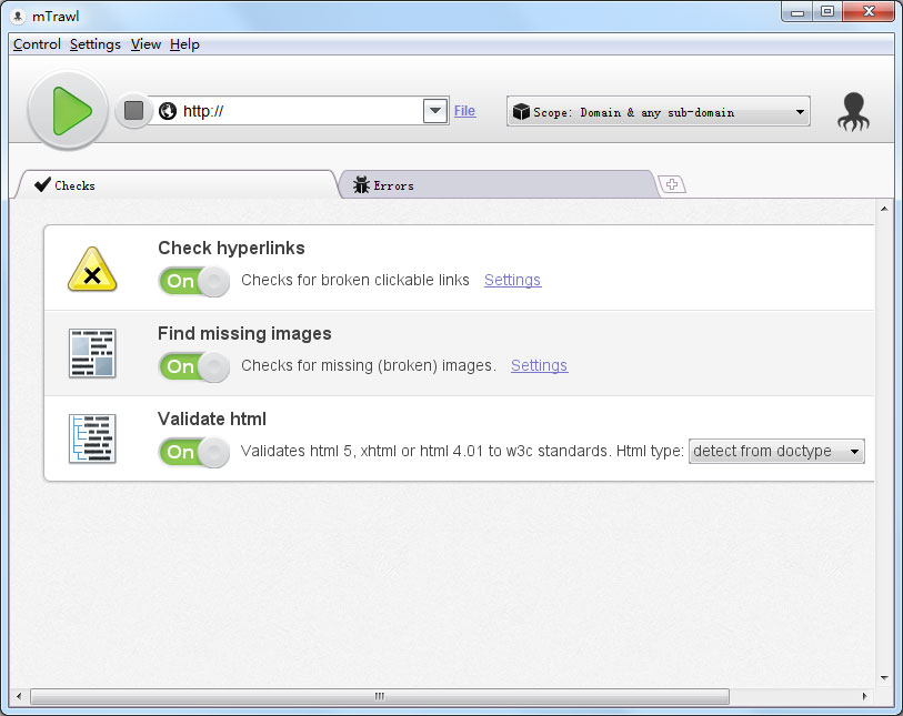 mTrawl官方版可帮助您维护网站的有效性和一致性,方法是扫描其链接和页面,确定它们是否仍然可用,或者是否导致网页损坏,这些通常会显示404错误。它需要在您的计算机上安装Java才能正常工作。