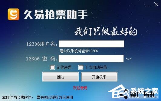 2.久易抢票助手使用您的12306帐号做为软件登陆帐户,建议使用通过核验的手机号做为登陆帐号,如遇密码错误将退出软件。