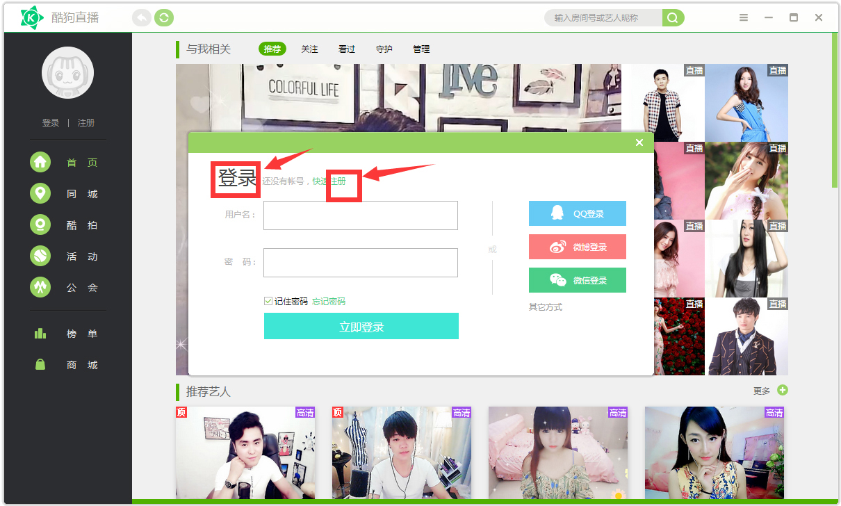 支持数万人同时在线参与互动,堪比小型演唱会;使用酷狗KRC精准歌词、伴奏曲库、点歌技术,把KTV搬到电脑屏幕前;首页高频自动刷新直播间列表,保证直播信息的即时性。