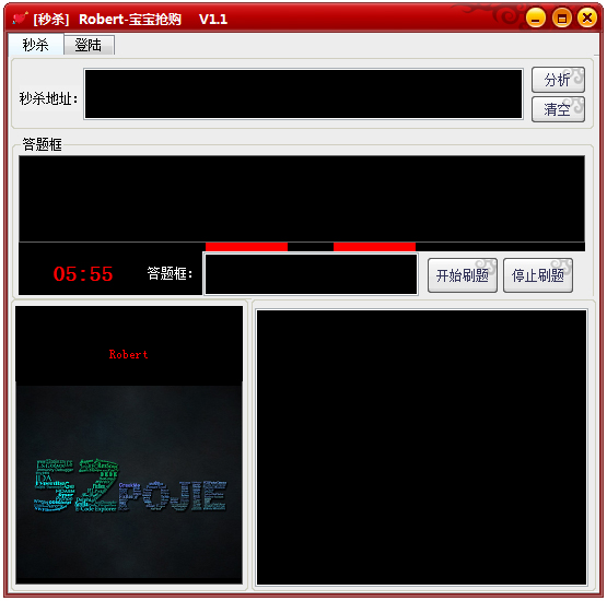 Robert宝宝抢购是专门用作于淘宝秒杀的辅助程序。 最近看某宝双11来了,活动也多了,抽几个小时研究了一下,用易写了一个小工具,实测还是可以秒的到的,有需要的朋友快来下载。