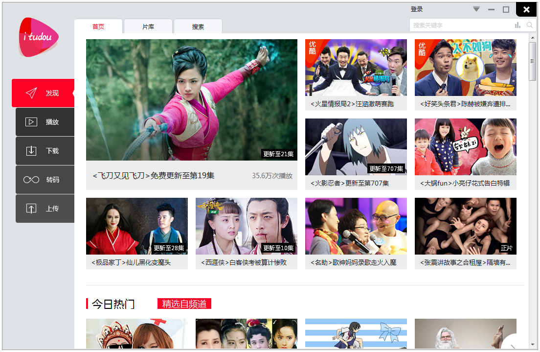 5.土豆视频播放器的五大功能:发现、播放、下载、转码、上传