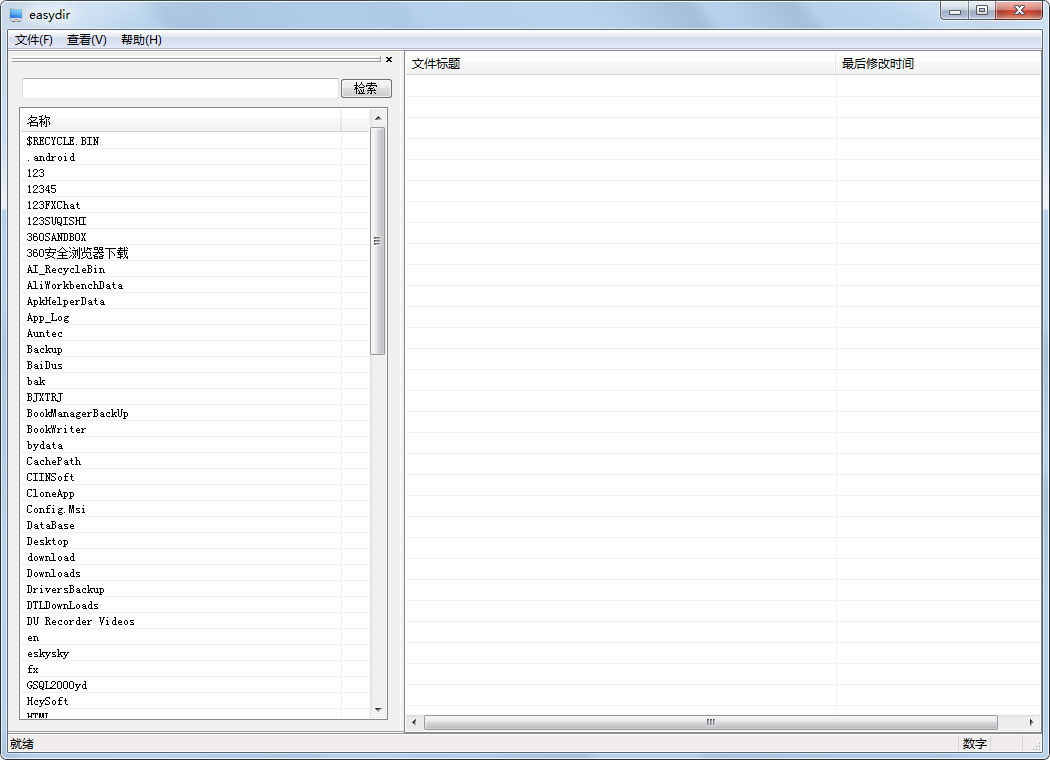 easydir是一款文件夹查询工具,用户使用easydir可以快速查询需要的文件或者文件夹,使用非常的方便,输入关键字即可查询,右侧可以打开文件内容,简单实用。