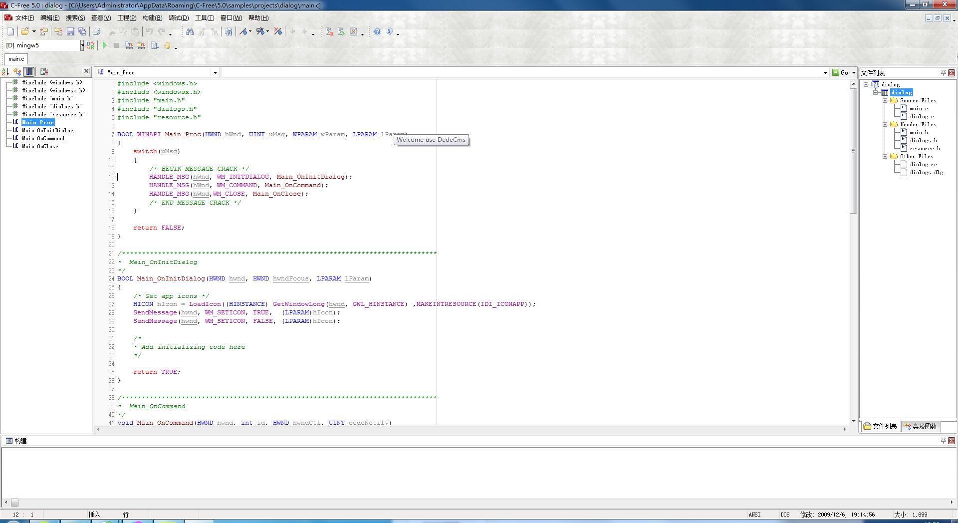 12. 工程转化功能,可将其他类型的工程转化为C-Free格式的工程,并在C-Free中打开。