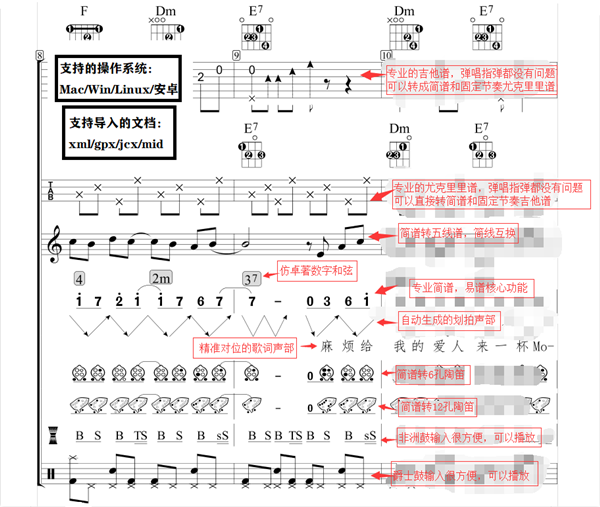 2、支持吉他谱制作和弹唱谱制作。