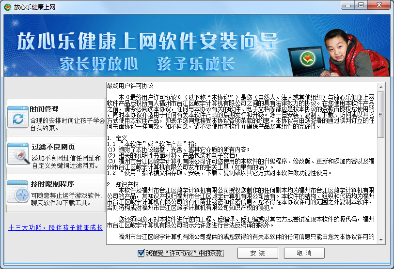 1、控制上网时间:自由设置孩子每天的上网时间,避免孩子长时间上网带来的健康危害,合理的安排上网时间。
