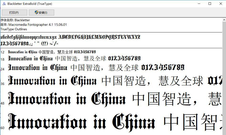 英文的哥特式字体有很多,但是中文字库中还没有公司能开发出中文的哥特字体(截至2013年)。