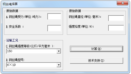 钢丝绳选择计算器是一款非常适合建筑行业使用的计算器工具,界面简洁美观,功能出众实用,能够根据用户朋友的运输情况,帮助大家选择最实用的钢丝绳,使用方法非常的简单,体积也十分的小巧,不会影响电脑的运行速度,可以根据你的运输情况,帮你选择最实用的钢丝绳,非常适合工程项目的人员。