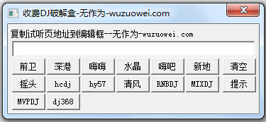 支持的DJ网站有前卫,深港,嗨嗨,水晶,嗨吧,新地,摇头,HCDJ,HY57,清风,RNBDJ,MIXDJ,MVPDJ,DJ368等等网站
