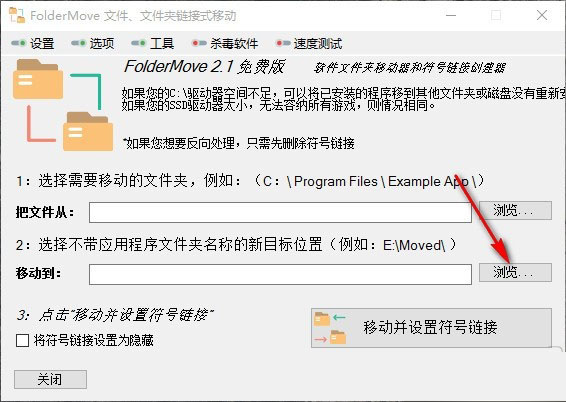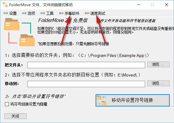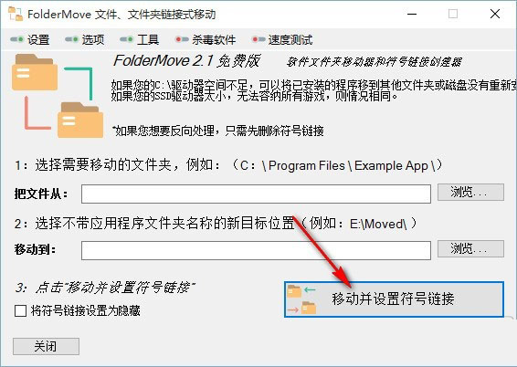 3、点击移动并设置符号链接,即可快速进行相关处理;