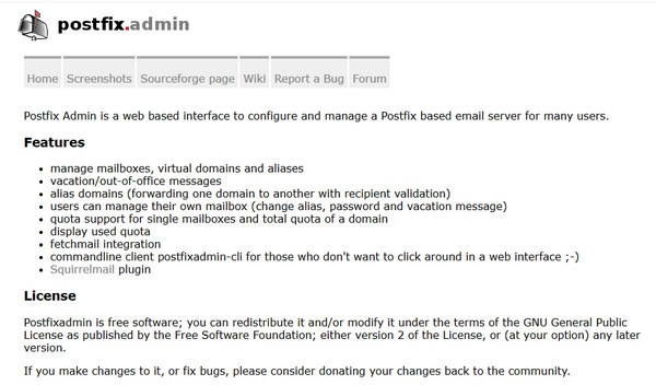 Postfix Admin(Web管理工具)是一款十分好用的web管理工具。软件主要由PHP语言完成。目前支持MySQL和PostgreSQL数据库。而且当使用者在假期或者是其他不在电脑边上的时候,软件还可以设置自动回复来回应用户,以防用户在使用的过程中联系不到管理员。