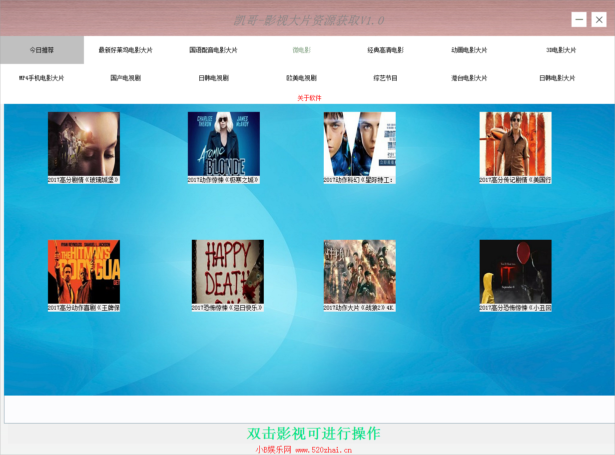 1、解压压缩包,打开“凯哥影视大片资源获取工具”