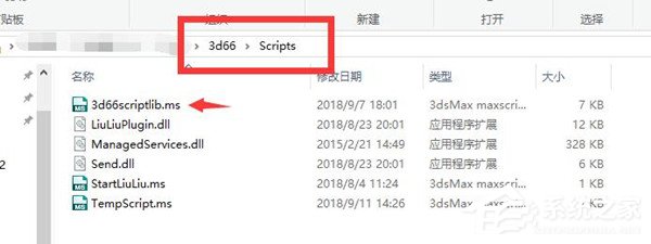3、打开你的max文件所在位置,查看此目录下有没有3d66脚本,没有的话从溜云库里的Scripts文件下将3d66脚本复制到max标红框的那个目录下。