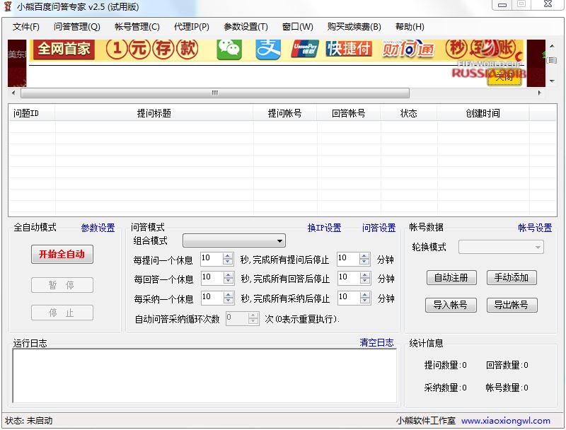 2.手动添加百度账号批量导入导出账号和问答内容,单独设定提问帐号和回答帐号等功能。