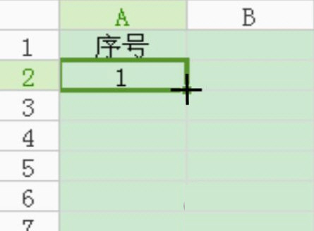 在表格序号第一个位置,输入1,鼠标移动到该框的右下角,等待鼠标指针变成黑色十字的时候,按住左键往下拖动。