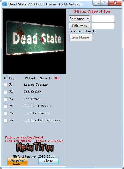 死亡国度六项修改器是一款针对死亡国度做的六项修改器。