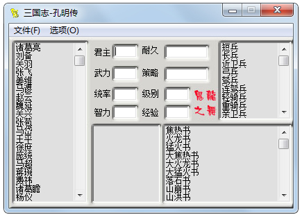 三国志孔明传修改器是一款简单实用且操作方便的游戏存档作弊器,能够轻松的针对游戏人物进行相应的属性修改,包括修改各个游戏人物的耐力、武力、策略、统率、级别、智力、经验等,极大的降低了游戏难度,提高了玩家的通关胜算,非常的实用,快下载收藏吧。