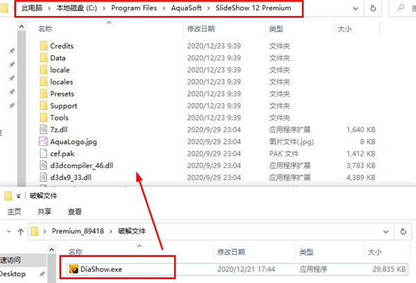 1、在本站下载软件并解压,可得到AquaSoft SlideShow Premium源程序和破解文件DiaShow.exe