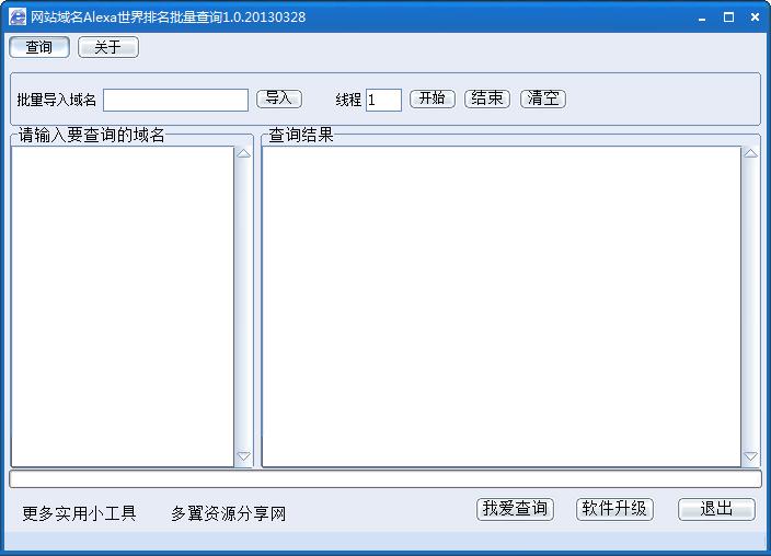 网站域名Alexa世界排名批量查询是一款专业用于用户查询网站排名的工具,用户使用可以导入域名,该工具可进行多线程批量查询,且使用方便,操作简单,是用户查询网站排名的得力助手,使用时只需要把查询的网站地址输入进去,一次性批量查询排名即可。