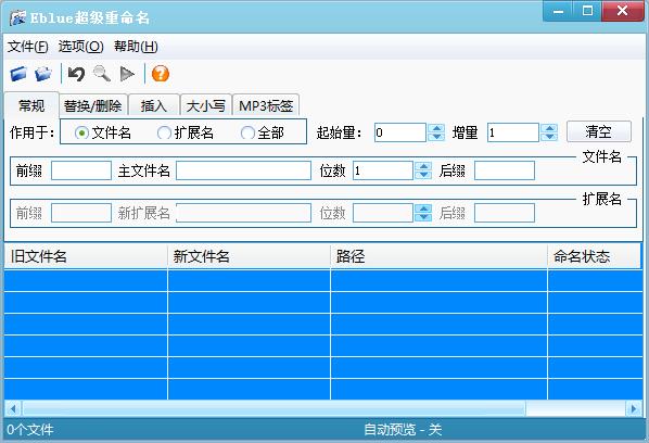 Eblue超级重命名是一款相当不错的文件名称批量更改软件,支持对大量文件进行批量重命名,并且能够根据文件特征进行重命名,能为重命名文件省下大于90%的时间,无论文件有多少,我们都能立即帮您全部重命名。