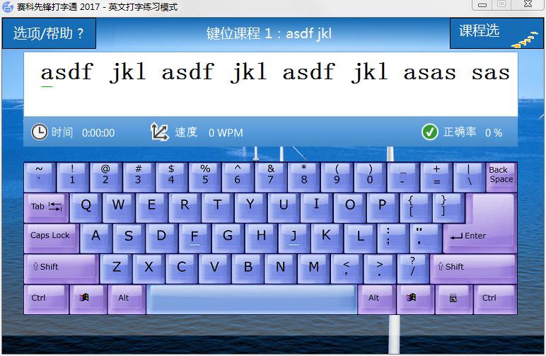 赛科先锋打字通是一款非常好用的打字练习软件,支持小学英语、初中英语、常用英语等单词、短语课程,可以根据需求自由选择,快速提升您的英文打字速度,还支持金山词霸等词典软件屏幕取词,主要针对对键盘打字不熟悉的用户使用。