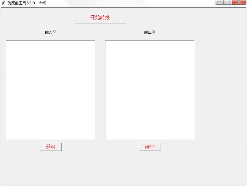 大铭伪原创工具是一款小巧且便捷的随机伪原创软件,能够帮助用户打散文章内容的分布,通过近义词替换来进行伪原创,可以进行多次处理达到降重的效果,大支持多次转换,如果一次转换后不满意,可以复制转换后的文字进行再次转换。