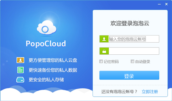 泡泡云平台(PopoCloud)是一种互联网存储工具,用户可将数据存储在云盘中,再也不用担心电脑空间不足或者文件丢失的情况了,需要的适合重新下载或分享即可,欢迎大家下载使用。