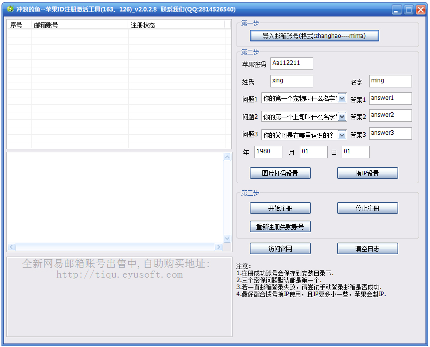 苹果ID注册激活工具是一款方便大家使用163邮箱注册激活苹果ID的工具,欢迎使用。
