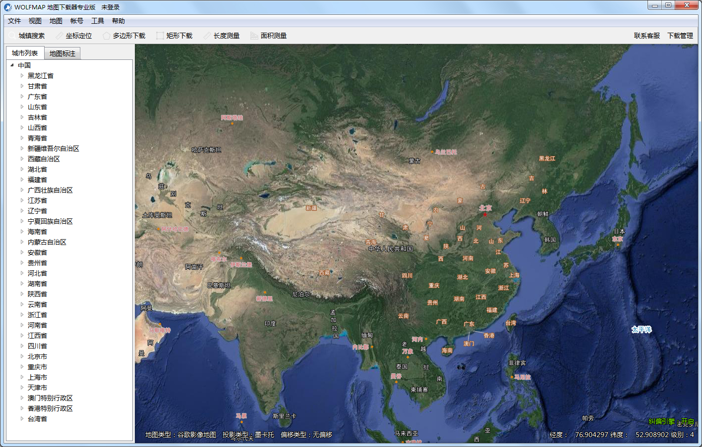 WOLFMAP谷歌地图下载器是一款轻量级的谷歌地图下载的工具。它支持地图在线预览、全屏浏览、地名搜索、坐标定位、矩形下载、长度测量、面积测量。度分秒转换、经纬度级别显示等功能,使用它让你充分利用谷歌的免费卫星地图资源,让你更了解世界。