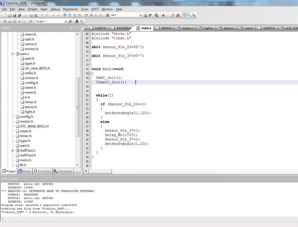 4、双击51duino_SDK.uvproj项目文件,keil会打开项目工程。